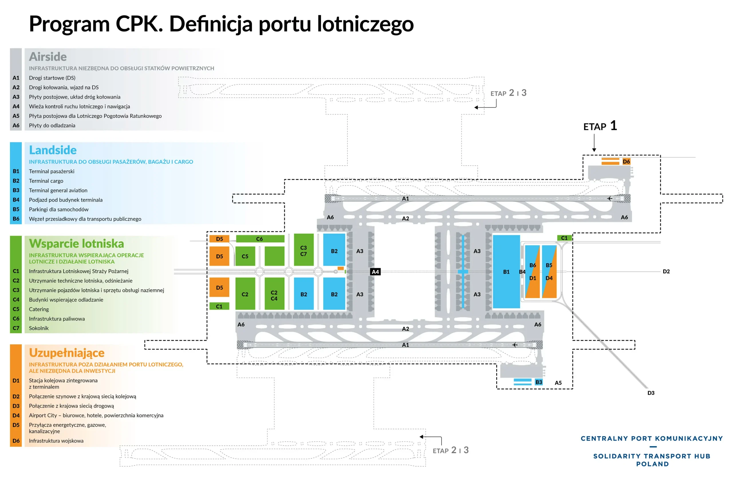 – Landside: drogi dojazdowe, parkingi, infrastruktura techniczna