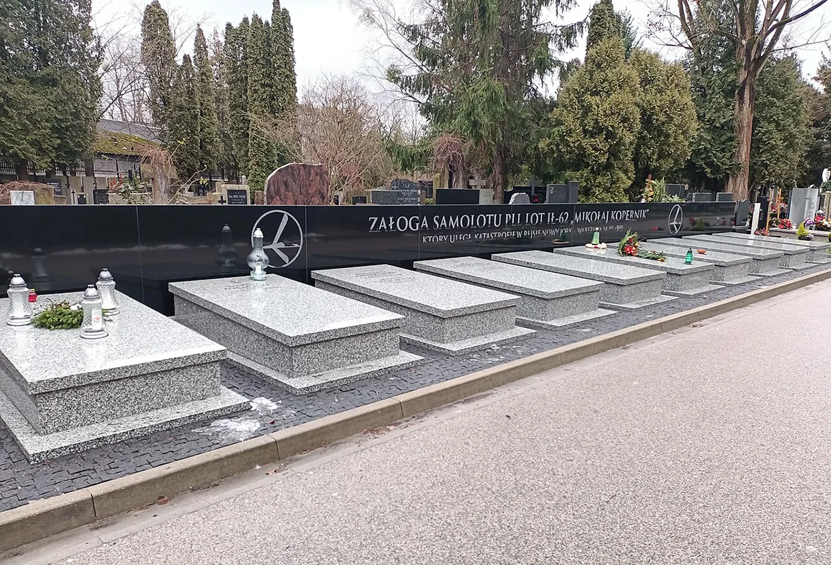 Pomnik ofiar katastrofy (w 1980) IŁ 62 Mikołaj Kopernik na cmentarzu wojskowym na Powązkach.
